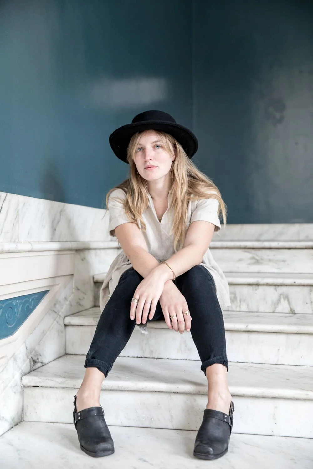 My personal style is always evolving— I’d say because it is driven by feeling and by limitation. Everyone has a budget and a lifestyle. In the last few years, slow fashion has entered the equation of what I can bring home. My style is influenced by my friends, not a particular person or type of style. We like to spend time at thrift stores or trading inspiration from Instagram pages. Because of this, my style is kind of modern-bohemian. I always like to feel groovy, which for me is a self-defined blend of feeling timeless, sexy, and cool. Always feminine. I feel like a million bucks when I’m wearing groovy denim and a white tee— like I can walk into any place and own the room. I’m not the most stylish person I know, but I’m completely satisfied by my own clothes.