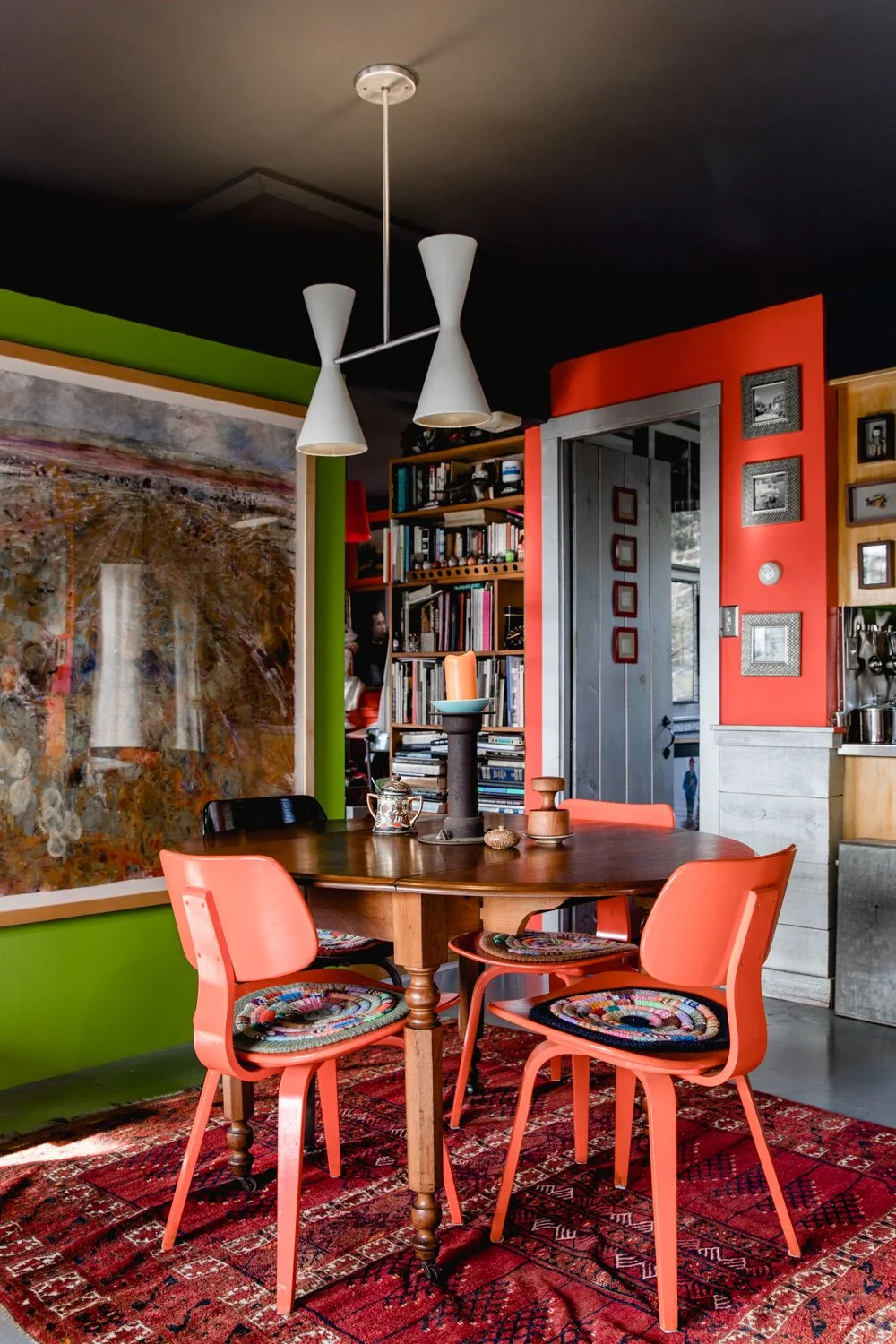 THE MAINERS: The colors! Tell us more about your bold use of colors. So often you see homes stripped of any colors at all and just painted white. You seem to embrace color and use it as a way to enhance what you fill your space with. How do you settle on a color? How does living in a house full of colors make you feel on a daily basis?